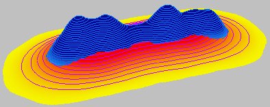 Both surfaces superimposed - two very different surfaces. The volume of both however is the same and is equal to the sum of the values of the input points.