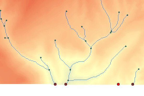 An example of Extract Outlets output (the red points). For some of the extracted points the