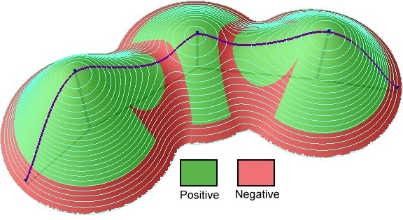 General Curvature (also called Total) is the curvature of the surface itself (not the curvature of a line formed by the intersection of the surface with a plane). The General Curvature can be positive or convex (indicating peaks), negative or concave (indicating valleys) or zero (indicating flat surface or a saddle).