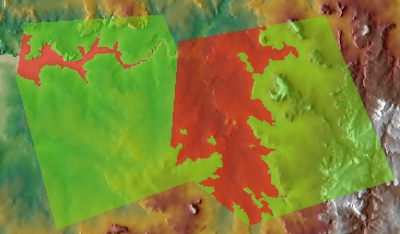 The result of the Cut/Fill function overlaid with the elevation raster.